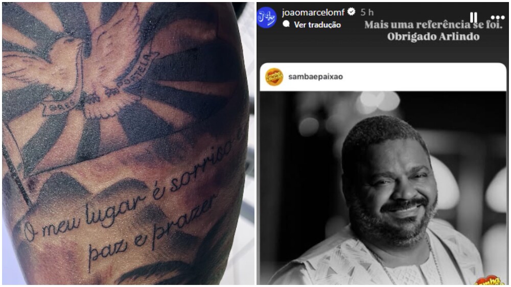 Jogador do Cruzeiro homenageia Arlindo Cruz e revela tatuagem com letra de música