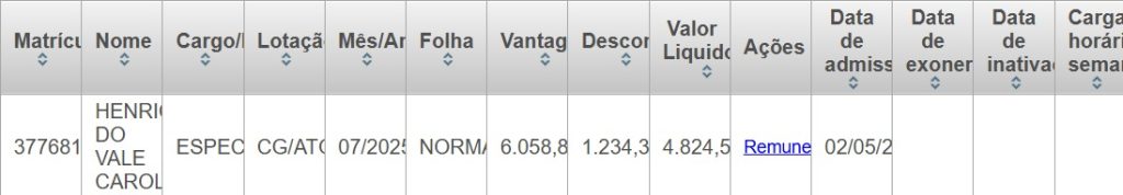 Henrique do Vale Caroli, namorado da filha caçula de Rosemary, Julia Macedo, é outro com lugar quentinho na esfera municipal — e, vejam só, também tem a sogra como chefe. Ele está nomeado como assistente na Assessoria Técnica do Gabinete da CGM e tem salário mensal bruto na ordem de R$ 6 mil.