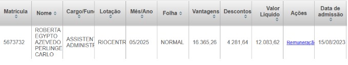 Com um salário bruto de R$ 67 mil mensais, a controladora geral do município do Rio, Rosemary Carvalho, tem o privilégio de trabalhar em família ou entre os mais próximos. Sua filha Roberta Egypto Azevedo Perlingeiro de Carlo já esteve nomeada, por anos, em órgãos municipais. Recentemente, deixou a RioEventos e foi para o Tribunal de Contas do Município, onde é secretária na Assessoria de Comunicação Social, Publicações e Audiovisual. Em maio deste ano, ainda na RioEventos, ela recebia R$ 16,3 mil por mês, sem os descontos.