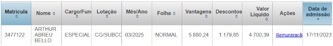 Mais perto está Arthur Abreu Bello, irmão de Rodrigo Abreu Bello, namorado de Roberta. O rapaz também já transitou por diferentes entes municipais, como a Gerência de Comunicações Administrativas e a Gerência de Acompanhamento e Controle da Regularidade Fiscal, ambas na Casa Civil. Atualmente, ele tem Rosemary como chefe, já que está nomeado na Gerência de Monitoramento da Regularidade Fiscal da Controladoria Geral do Município (CGM), recebendo o salário bruto de R$ 5,8 mil.