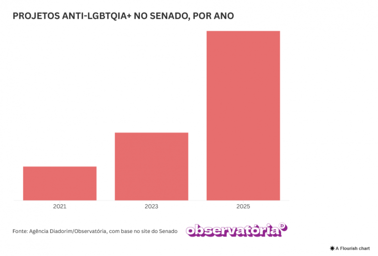 Em sete meses, o Senado mais que dobrou o número de projetos de lei que atacam direitos LGBTQIA+: de novembro de 2024 a junho de 2025, passaram de três para oito. Nenhuma nova proposta, no entanto, buscou ampliar a proteção dessa população.
