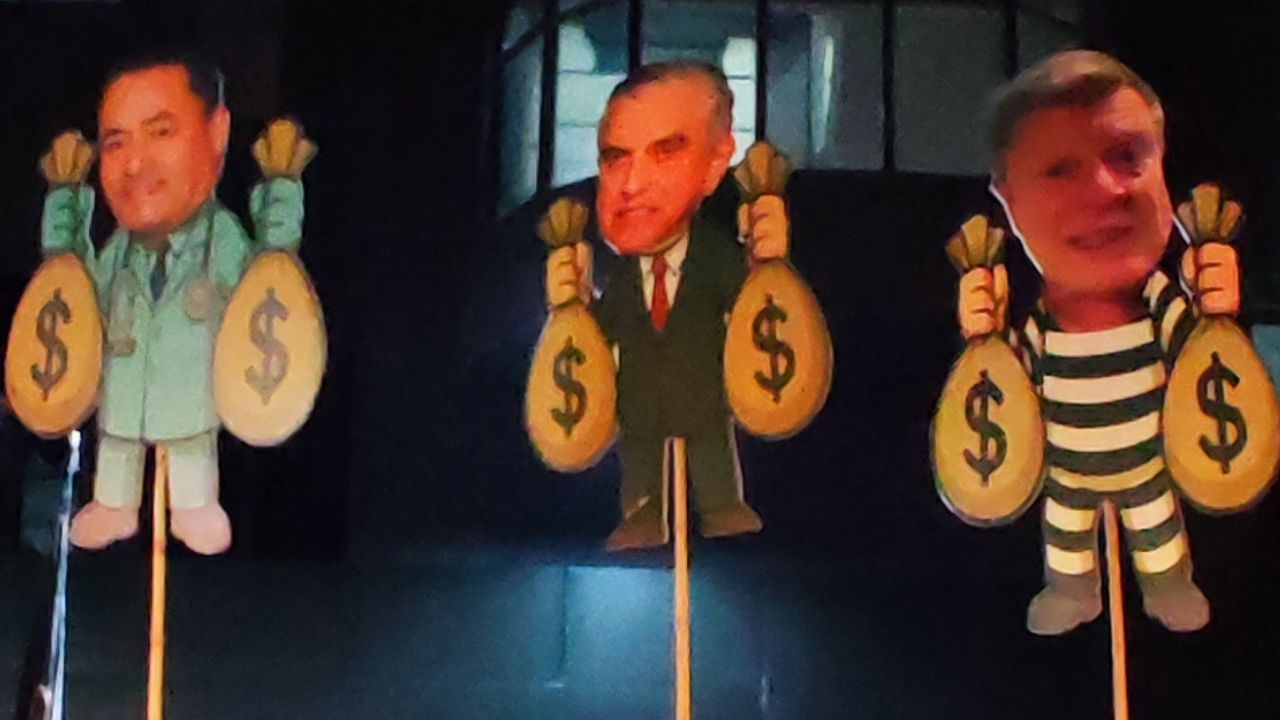 Torcida do Athletico protesta com caricaturas de Petraglia e diretores