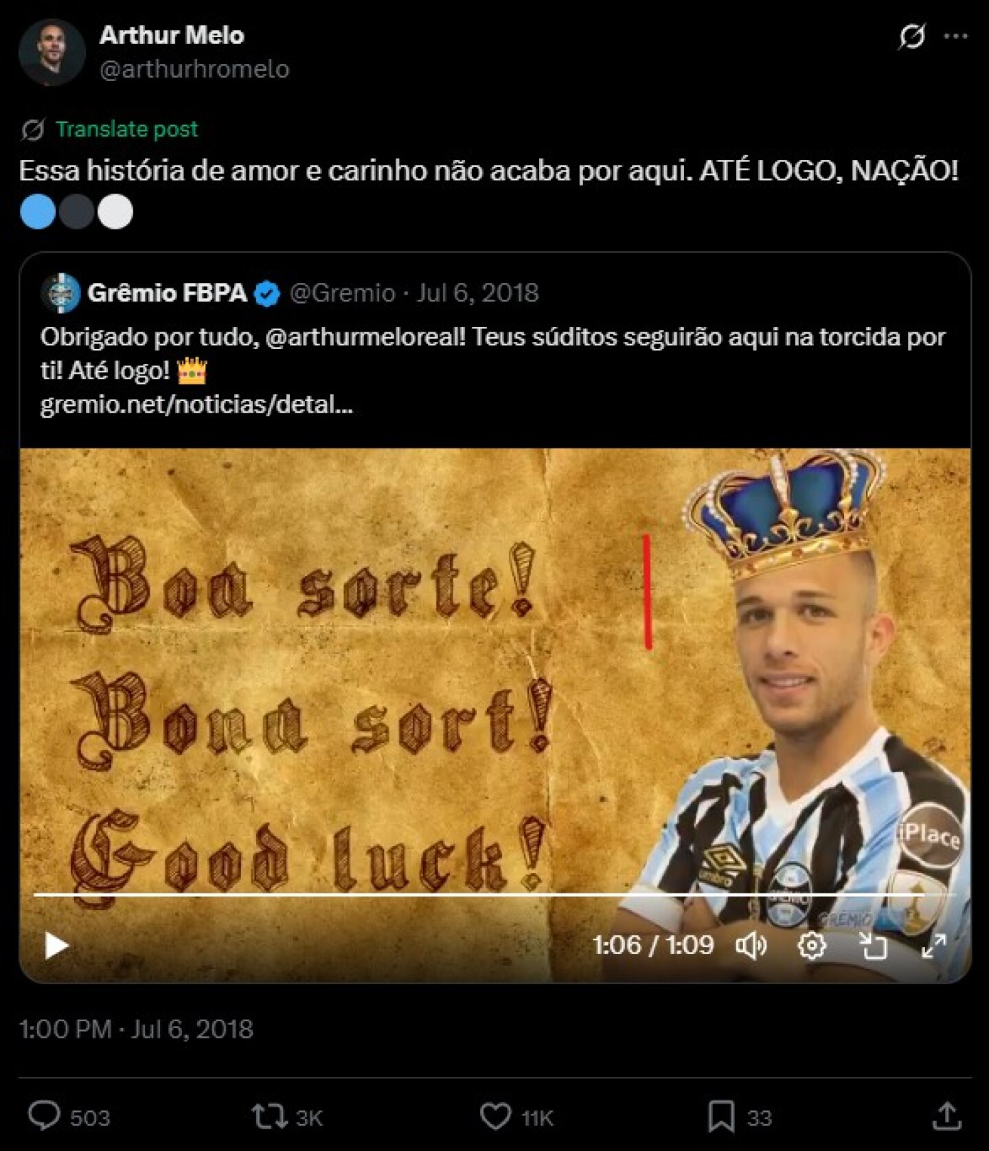 Arthur cumpre promessa e retorna ao Grêmio; relembre saída para o Barcelona